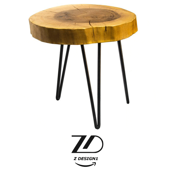 میز عسلی تنه درخت با پایه فلزی