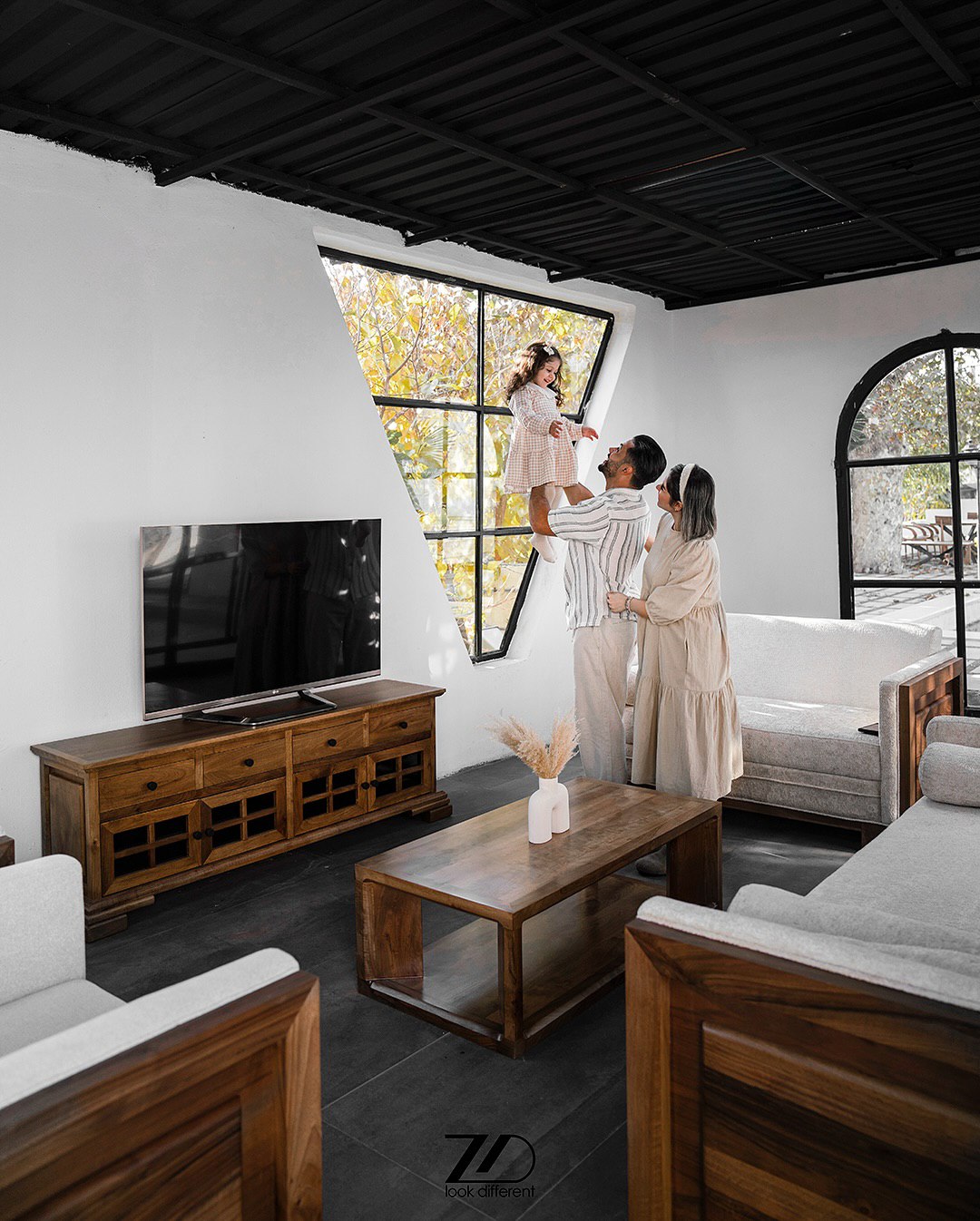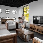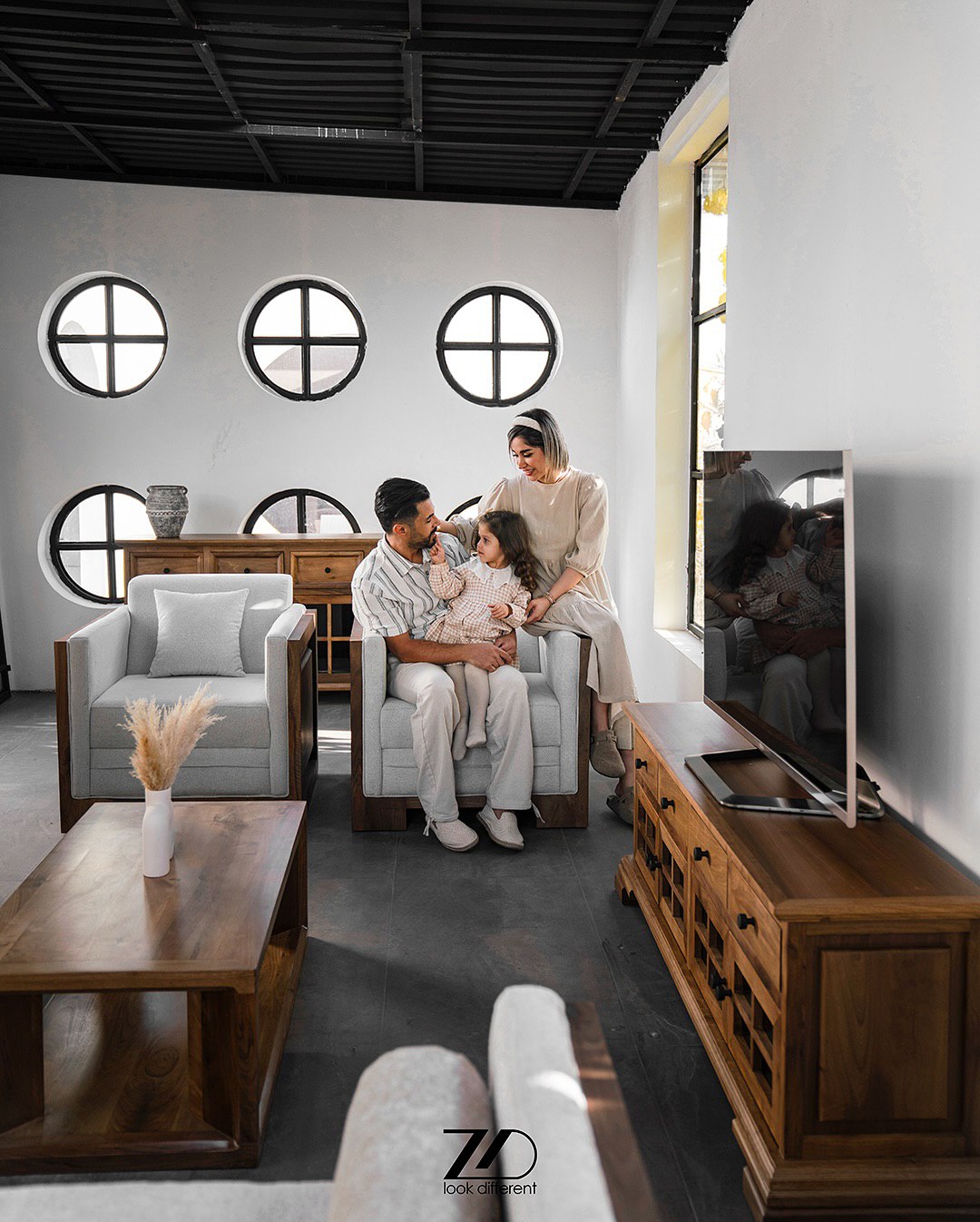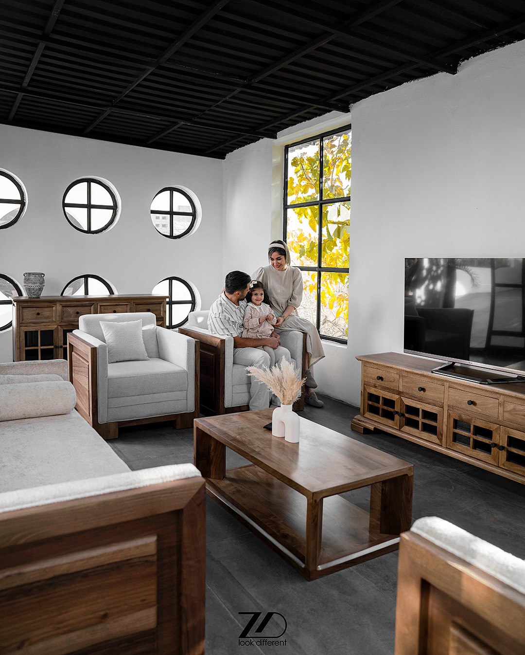 برای اتاق نشیمن: از ست مبلمان، میز جلو مبلی و میز تلویزیون با چوب گردو استفاده کنید تا یک کانون خانوادگی با اصالت خلق شود.
