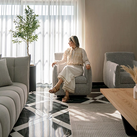 - طراحی تکنفرهها: مبلهای تکنفره با ابعاد مربعی 90*90 سانتیمتر، نشیمنی عریض و راحت دارند که حس در آغوش گرفته شدن را منتقل میکنند.