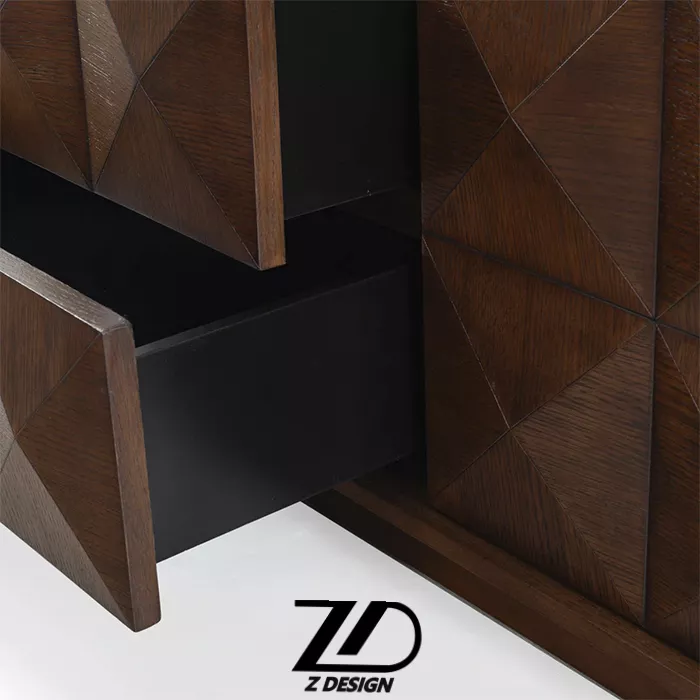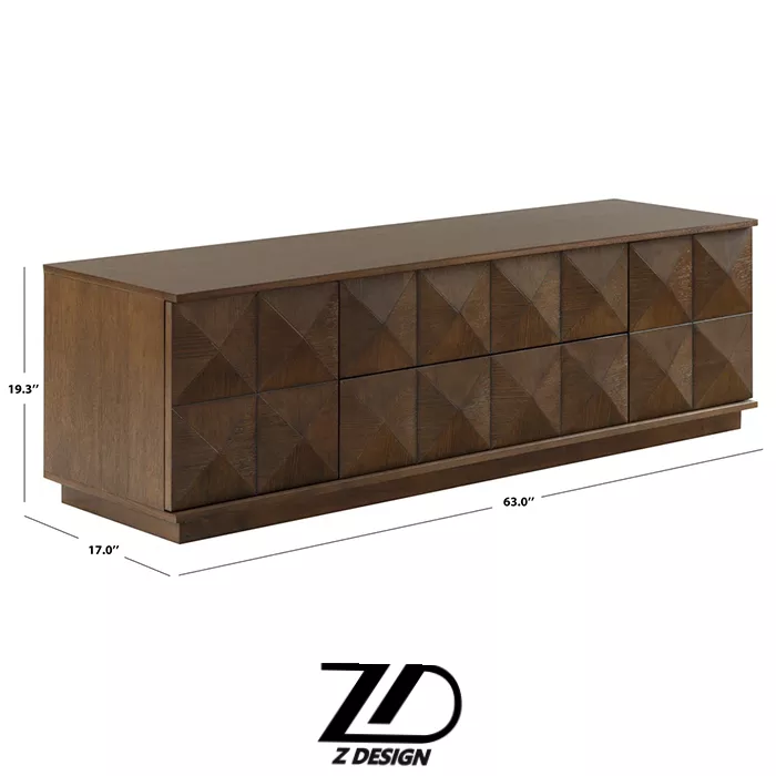 - ابعاد استاندارد و کاربردی: این میز با طول ۲۰۰ سانتیمتر، عرض ۴۰ سانتیمتر و ارتفاع ۶۰ سانتیمتر طراحی شده است که تناسبات طلایی برای یک میز تلویزیون استاندارد را رعایت کرده است.