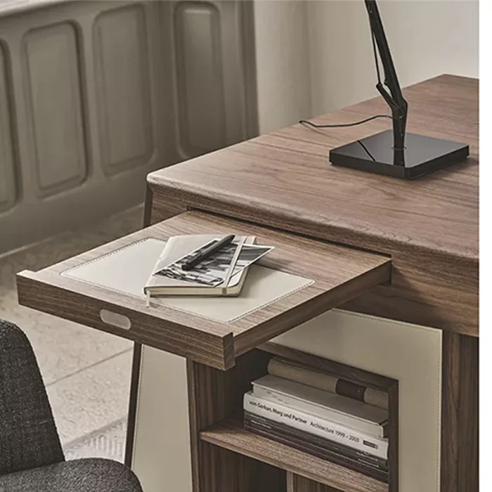 طراحی مدل جلوه به گونهای است که با حفظ سادگی، نگاهها را به خود جذب میکند. استفاده از خطوط صاف و کشیده در کنار گرمای رنگ چوب گردو، تعادلی دلنشین ایجاد کرده است. اگر به دنبال تجهیز اتاق مدیریت یا فضای کارشناسی ارشد هستید و میخواهید دکوراسیونی بهروز داشته باشید، پیشنهاد میکنیم حتماً گزینههای موجود در بخش خرید میز کارشناسی را بررسی کنید تا انتخابی متناسب با نیازتان داشته باشید. میز مدل جلوه نه تنها یک سطح کار، بلکه بخشی از هویت بصری دفتر شما خواهد بود.