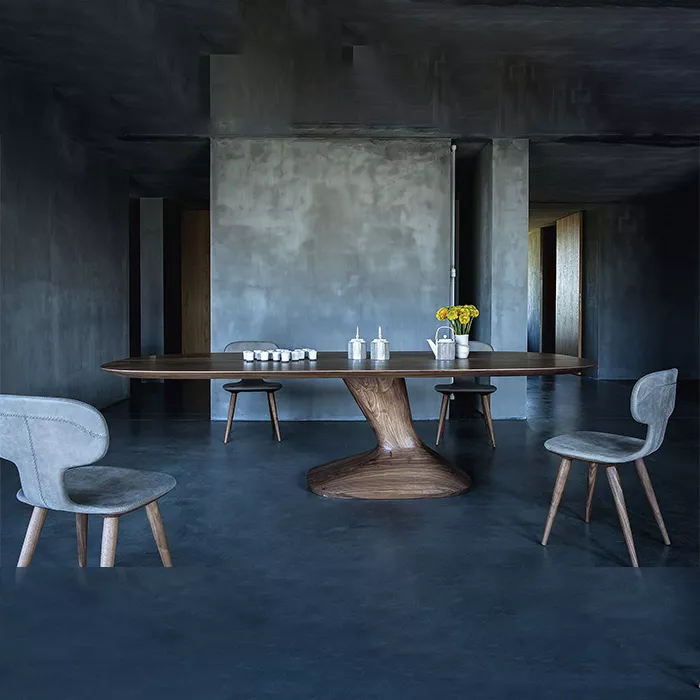 در ساخت میز ناهارخوری تک پایه مدل بیستون، تمرکز اصلی بر حفظ طبیعت و کیفیت بوده است. صفحه این میز از تمام چوب طبیعی ساخته شده که حس زنده بودن و گرمای طبیعت را مستقیماً به فضای داخلی منتقل میکند. یکی از ویژگیهای بارز این محصول، ضخامت ۵ سانتیمتری صفحه چوبی آن است که علاوه بر زیبایی بصری، مقاومت و طول عمر بالای میز را تضمین میکند.