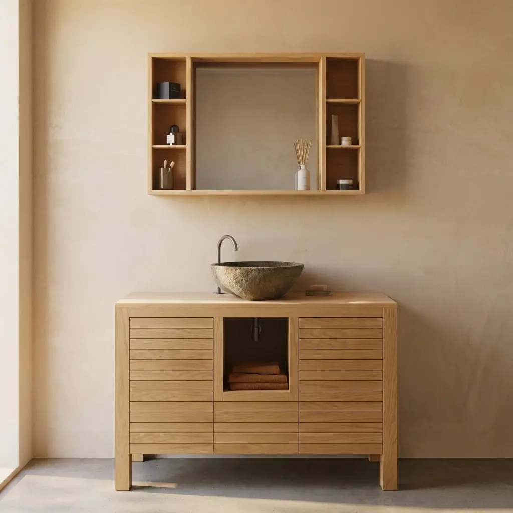 روشویی چوبی دیباس یکی از محصولات متمایز و خوشساخت مجموعه زد دیزاین است که با طراحی مینیمال و در عین حال گرم خود، جلوهای متفاوت به فضای سرویس بهداشتی میبخشد. این محصول یک ست کامل شامل کابینت روشویی و آینه است که با دقت و ظرافت بالا طراحی شده تا علاوه بر زیبایی بصری، کارایی لازم را برای استفاده روزمره فراهم کند. اگر به دنبال محصولی هستید که حس طبیعت را به خانه بیاورد و همزمان ساختاری مدرن داشته باشد، روشویی چوبی دیباس گزینهای ایدهآل است. ترکیب چوب طبیعی با سرامیک سفید، تعادلی چشمنواز ایجاد کرده که فضا را دلبازتر نشان میدهد.