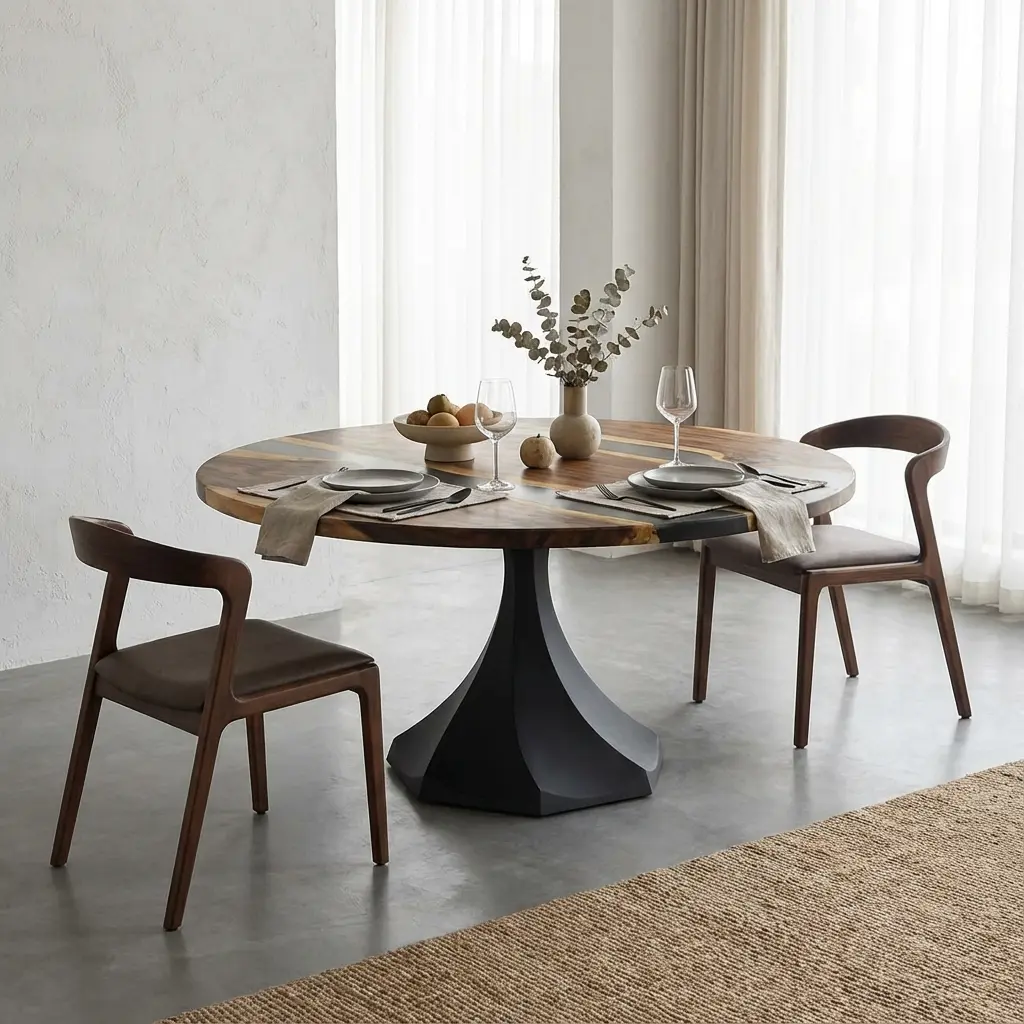 - طراحی ارگونومیک: فرم پایه به شکلی است که مزاحمتی برای پای افراد هنگام نشستن دور میز ایجاد نمیکند.