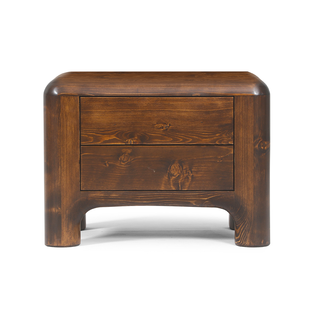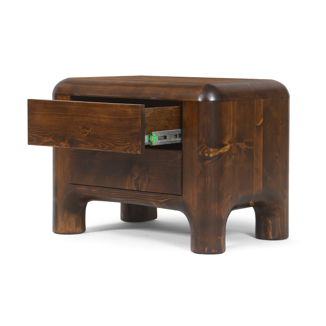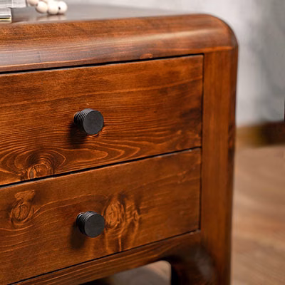 اولین ویژگی که در نگاه اول جلب توجه میکند، صلابت و سنگینی بصری ناشی از ضخامت ۱۰ سانتیمتری چوب است. این ویژگی باعث میشود پاتختی صرفاً یک وسیله کاربردی نباشد، بلکه مانند یک اثر هنری طبیعی در اتاق شما بدرخشد. استفاده از چوب تمام طبیعی یعنی هیچ دو نمونهای از پاتختی چوبی اینفینیتی کاملاً شبیه به هم نیستند و هر کدام نقش و گرههای منحصربهفرد خود را دارند.