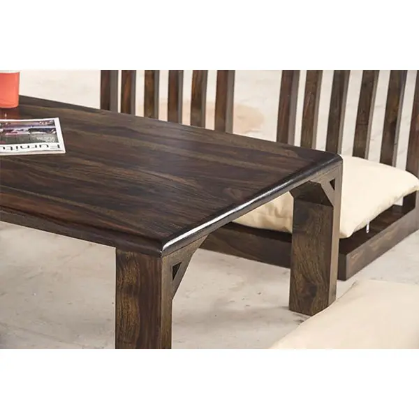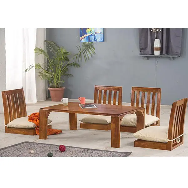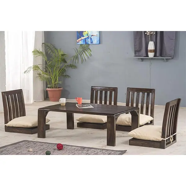 - نشیمن راحت: همراه این میز، ۴ عدد صندلی بدون پایه (پشتیدار زمینی) به همراه تشکچه عرضه میشود که راحتی ستون فقرات و نشیمنگاه را تضمین میکند.