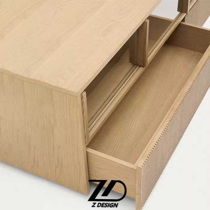 میز تلویزیون چوبی مدل کیمیا با دقت بالا در جزئیات طراحی شده تا علاوه بر زیبایی، کارایی لازم را نیز داشته باشد. برخی از ویژگیهای بارز این محصول عبارتاند از: