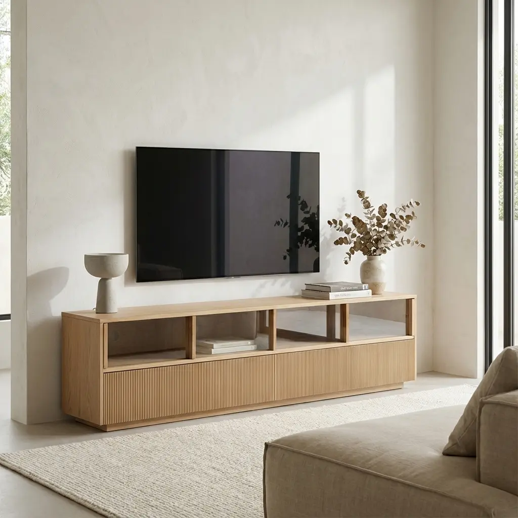 رنگ و بافت طبیعی بلوط باعث میشود این میز با اکثر پالتهای رنگی، از رنگهای خنثی و طوسی گرفته تا رنگهای گرمتر، ست شود. اگر در مرحله انتخاب دکوراسیون هستید و قصد بررسی گزینههای مختلف را دارید، پیشنهاد میکنیم برای مقایسه و خرید میز تلویزیون چوبی در طرحهای متنوع دیگر، نگاهی به سایر محصولات دستهبندی ما بیندازید تا بهترین انتخاب را متناسب با فضای خود داشته باشید.