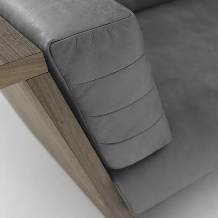 در ساخت اسکلت و نمای اصلی مبل راحتی تمام چوب لیانا، همانطور که از نامش پیداست، از تمام چوب طبیعی استفاده شده است. نکته قابل توجه در این محصول، استفاده از الوارهایی با ضخامت ۳.۵ سانتیمتر است که علاوه بر ایجاد استحکام فوقالعاده بالا، ظاهری قدرتمند و لوکس به مبل بخشیده است. سطح چوب با دقت فراوان پرداخت شده و هیچگونه زبری یا ناهمواری روی آن حس نمیشود.