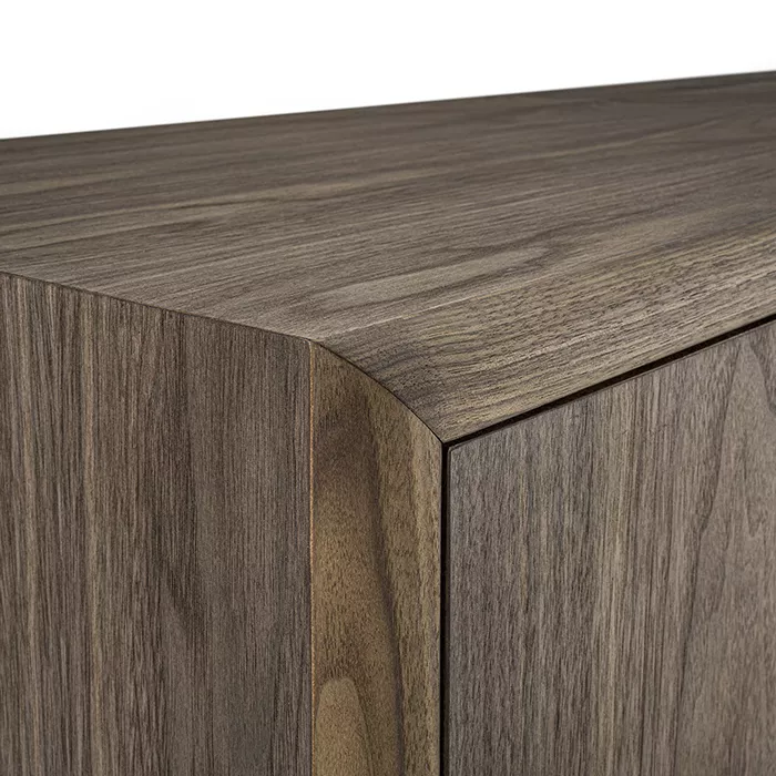 در ساخت کنسول مانلی، کیفیت متریال حرف اول را میزند. بدنه اصلی این کار ترکیبی از چوب طبیعی و روکشدار گردو است که علاوه بر استحکام بالا، نقش و نگارهای زیبای چوب را به نمایش میگذارد. استفاده از روکش گردو باعث شده تا طیف رنگی گرم و قهوهای عمیقی در ظاهر محصول دیده شود که با اکثر پالتهای رنگی دکوراسیون هماهنگی دارد.