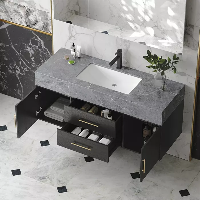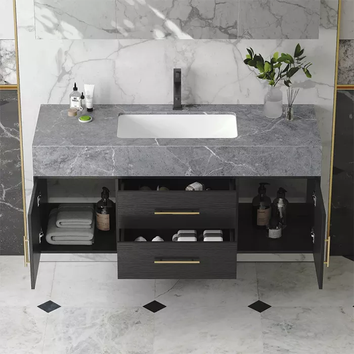 - فضای ذخیرهسازی: طراحی کابینتی این مدل، فضای مناسبی را برای پنهان کردن اتصالات لولهکشی و نگهداری حوله یا مواد شوینده فراهم میکند.