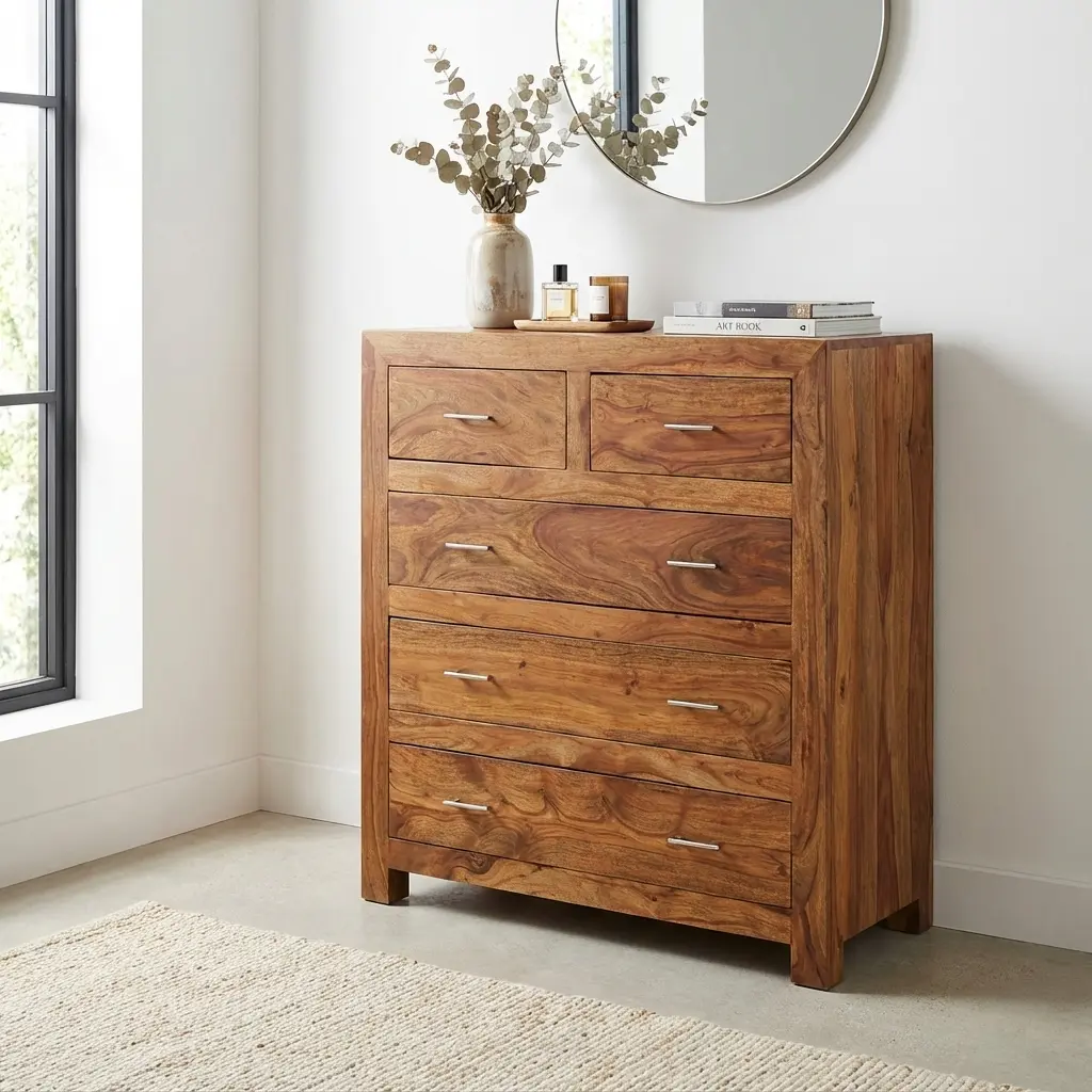 یک دراور شیک می تواند یک نقطه کانونی به اتاق خواب شما اضافه کند، خصوصاً در اتاقی که کمد لباس و چند مبلمان دیگر مثل یک مبل تخت خواب شو یا یک مبل تک نفره معمولی وجود دارد، دراور می تواند نقطه کانونی باشد که همه این ها با محوریت آن چیدمان می شوند و در نهایت یک دکوراسیون شیک برای اتاق خواب خود دارید. فقط دراور چوبی مارگارت نیست که برای یک اتاق خواب کاربردی و ضروری است روی دراور هم یک فضای عالی است که می تواند نمایشگاهی از سلیقه ما در چیدمان اتاق خواب باشد.