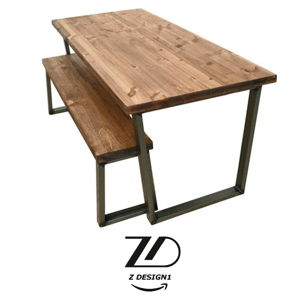 این میز ترکیبی از فلز و چوب لبه طبیعی است که با نیمکت ست بسیار زیبا و کاربردی می سازد. این میز به دلیل فرم پایه ها بسیار راحت جا به جا شده و از نمونه های با پایه ضخیم چوبی بسیار سبک تر است.