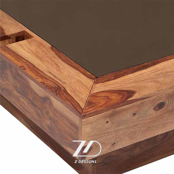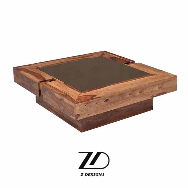 این میز جلو مبلی به عنوان میز ژاپنی نیز قابل استفاده می باشد. این میز جلو مبلی T شکل است که سطح آن مربع شکل است در وسط آن از شیشه استفاده شده است. پایه میز هم به شکل مکعب مربع می باشد.