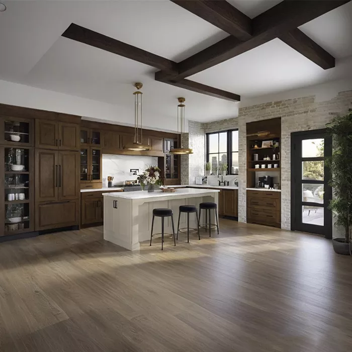 - طبیعتگرایی: روکش چوب گردو باعث میشود هیچ دو درب یا کشویی کاملاً شبیه هم نباشند و هر بخش از کابینت، طرح منحصربهفرد خود را داشته باشد.