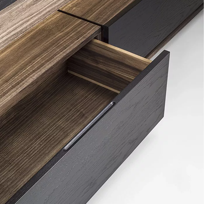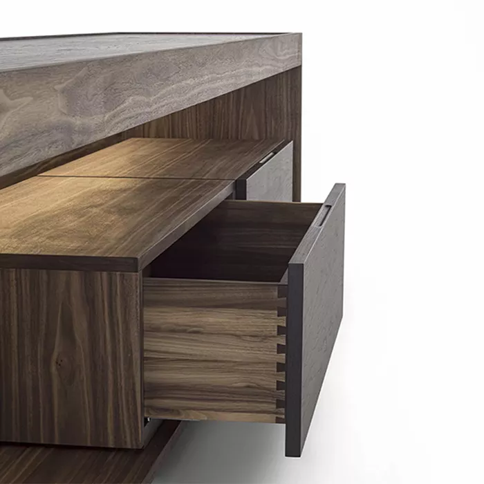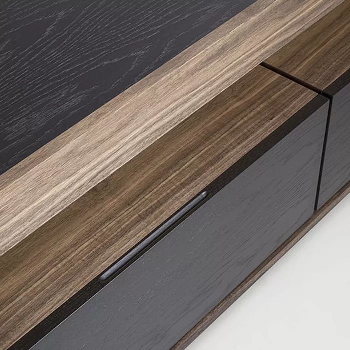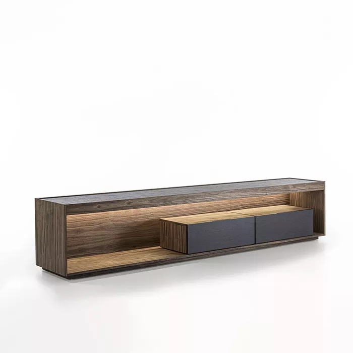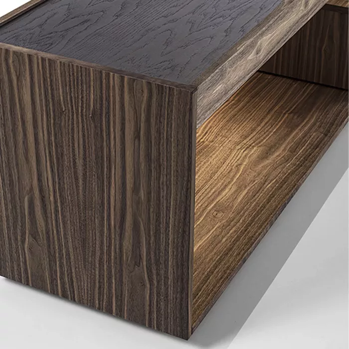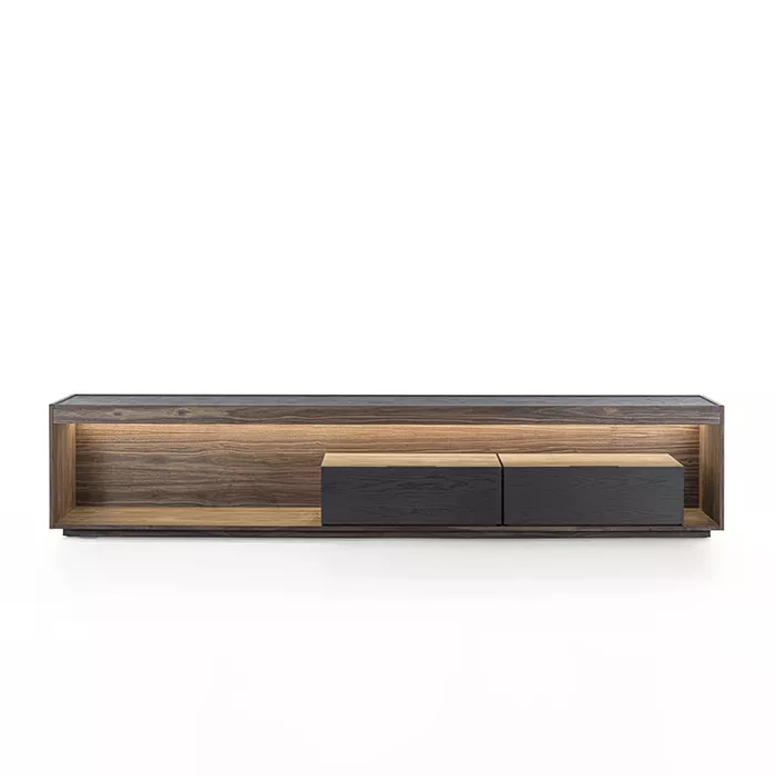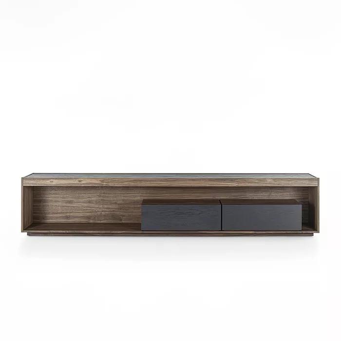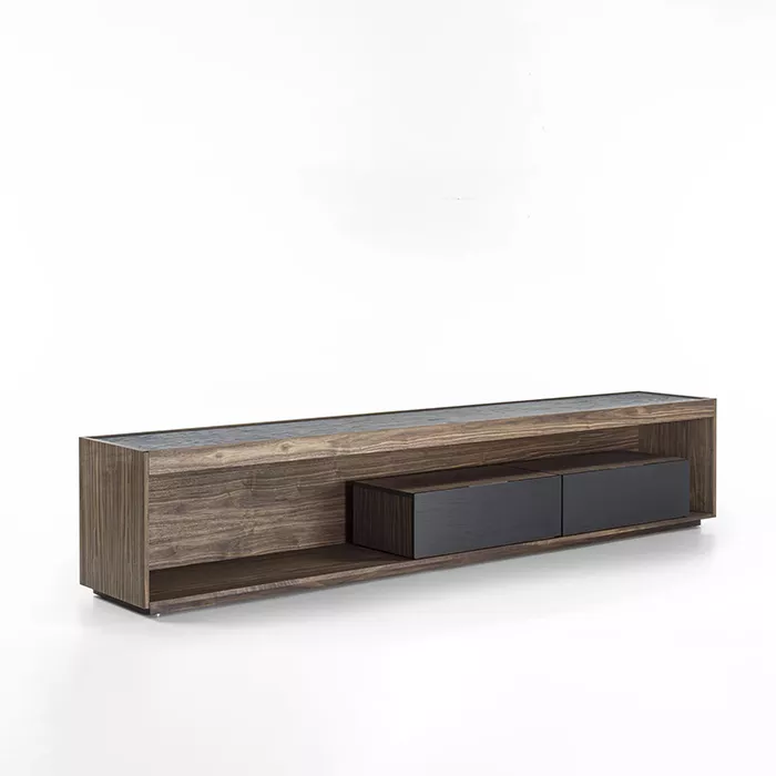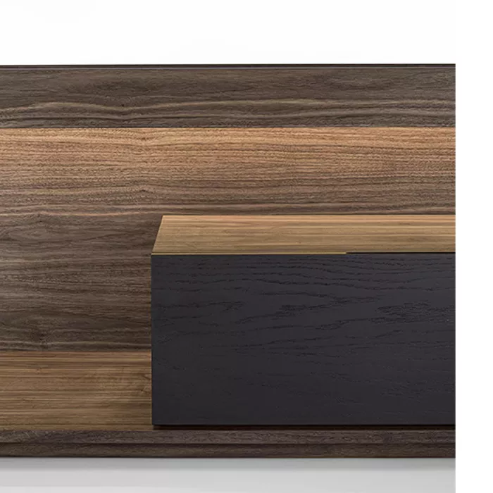 در ساخت میز تلویزیون چوبی ریو، از تمام چوب طبیعی گردو استفاده شده است. چوب گردو به دلیل استحکام بالا، بافت متراکم و رنگپذیری فوقالعاده، یکی از محبوبترین متریالها در صنعت مبلمان لوکس محسوب میشود. ضخامت چوب به کار رفته در این محصول ۲.۵ سانتیمتر است که هم مقاومت بالایی در برابر وزن تلویزیون دارد و هم ظاهری ظریف و غیرحجیم به میز میبخشد.