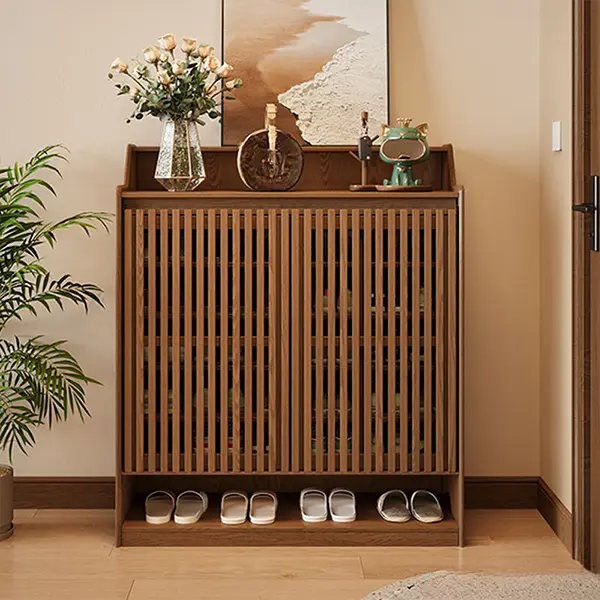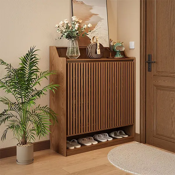 سطح رویی این جاکفشی با ارتفاع ۱۰۰ سانتیمتر، فضایی عالی برای قرار دادن گلدان، کلیدها، آینه یا قاب عکس فراهم میکند و عملاً نقش یک کنسول ورودی را نیز ایفا میکند. اگر به دنبال ایجاد تغییر در دکوراسیون ورودی منزل خود هستید و قصد خرید جاکفشی چوبی با استایلی خاص و متمایز را دارید، مدل ساکورا میتواند گزینهای هوشمندانه باشد که هم نظمدهنده است و هم دکوراتیو.
