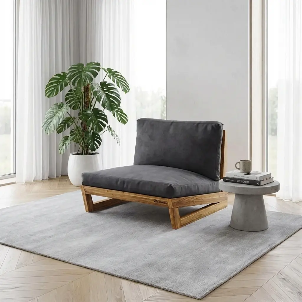 به عنوان یک قطعه مبلمان مینیمال و ساده با پایه های چوبی، این صندلی راحتی در دکوراسیون اتاق نشیمن یا اتاق پذیرایی به عنوان یک مبل شیک و راحت می‌تواند مورد استفاده قرار گیرد. پایه های چوبی طبیعی و روکش توسی تیره این صندلی به دکور داخلی زیبایی زیادی می بخشد. و از این جهت می‌توانید آن را در فضاهایی با سبک مدرن یا کلاسیک به کار ببرید.