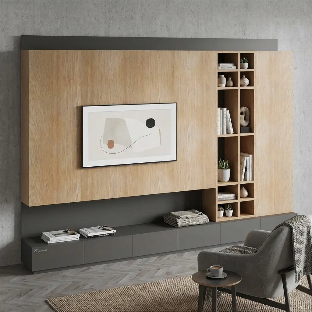 ایدههایی برای دکوراسیون با میز تلویزیون چوبی آويژه
