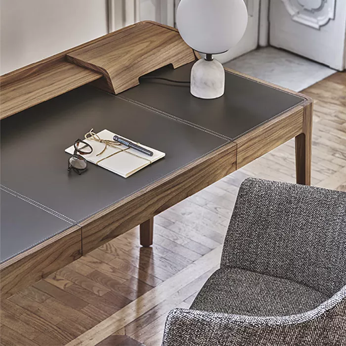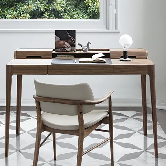 ارتفاع استاندارد ۷۵ سانتیمتری این محصول باعث میشود تا هنگام نشستن پشت آن، ارگونومی بدن حفظ شده و از خستگی زودرس جلوگیری شود. همچنین، ظاهر شیک و رسمی آن باعث شده تا بسیاری از مدیران جوان و فریلنسرها آن را به عنوان یک میز مدیریتی مدرن برای دفتر کار خود انتخاب کنند. گرمای رنگ چوب گردو، فضای خشک کاری را تلطیف کرده و انرژی مثبت را در محیط جریان میدهد.